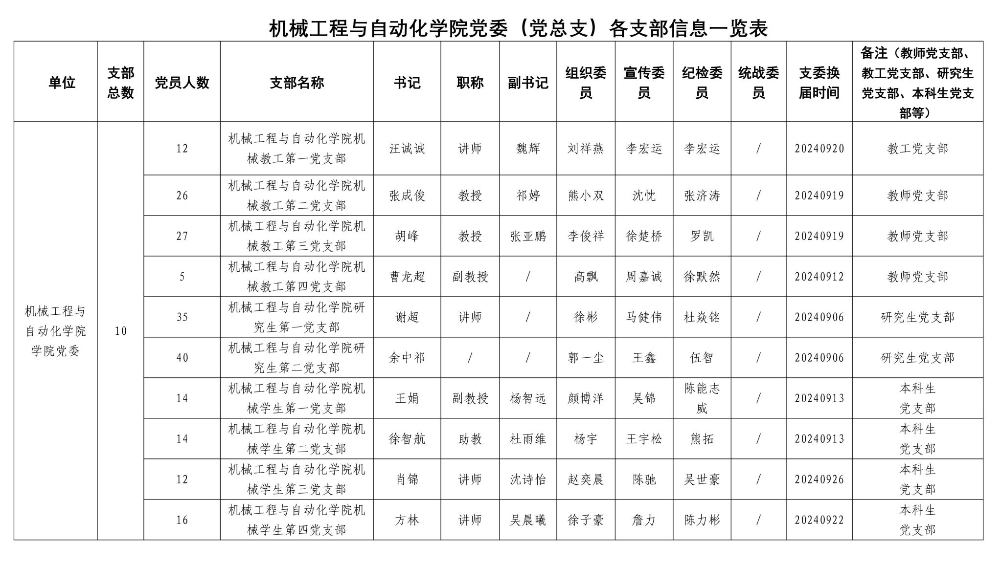 党委(党总支)书记:干文勋,副书记、宣传委员:周玉艳,统战委员、组织委员:张成俊,纪检委员:宋志峰,青年委员:曹龙超
