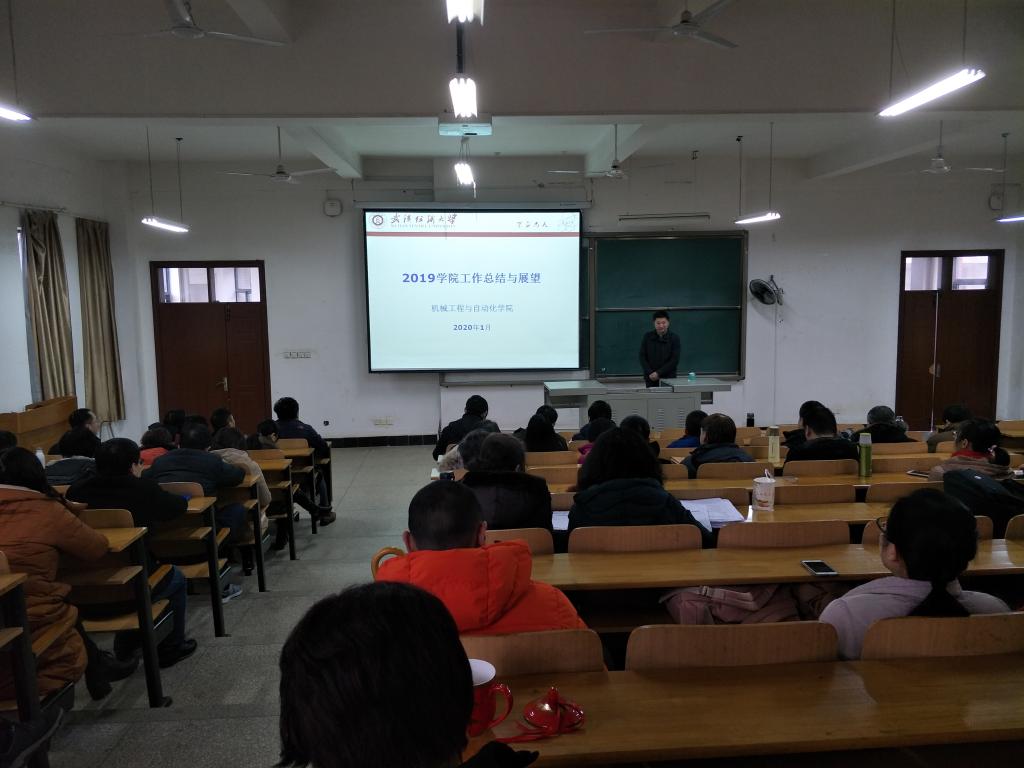 1月9日下午, 机械工程与自动化学院在8D201隆重召开第一届六次教代会。会议聚焦立德树人、改革发展,总结梳理、科学谋划,热烈讨论、凝聚共识,为推进学院专业认证、申博和一流专业建设理清工作思路、明确目标任务。学院班子成员、教职工代表、工会会员代表、列席代表80余人出席了会议。会议由院党委书记肖信华主持。会议听取、审议并通过了余联庆院长代表学院所作的工作报告《2019年学院工作总结与展望》和工会主席宋志峰同志所作的工作报告《机械工程与自动化学院 2019年工会工作总结》。