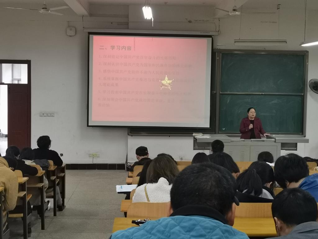 肖信华同志从组织领导、总体要求、学习内容、工作安排等几个方面做了比较全面的讲解,强调党史学习教育要覆盖我们学院每位教职工和学生,全体教职工和学生要把“学党史、悟思想、办实事、开新局”总要求贯穿学习教育全过程。她表示,希望全院师生从党的百年伟大奋斗中汲取前进的智慧、力量与自信,并进一步深入贯彻习近平新时代中国特色社会主义思想及习近平总书记在党史学习教育动员大会上的重要讲话精神,确保在思想上“不忘初心”,在行动上“牢记使命”。
