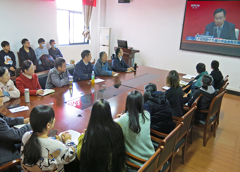 余联庆带领大家集体收看新闻发布会直播,集体研读了《中国共产党第十九届中央委员会第六次全体会议公报》。余院长表示,全会全面回顾了党领导人民百年奋斗的辉煌历程,系统总结了党百年奋斗的历史经验,从历史、现实和未来的结合上深刻阐明了中国共产党是什么、要干什么这个根本问题,从理论和实践的结合上深刻阐明了中国共产党推动马克思主义中国化的三次飞跃及其伟大意义,进一步深化了我们对中国共产党为什么能够成功、未来我们怎样才能继续成功这一重大历史课题的理解。学院要将全会公报提出的一系列重大观点、重要论断、重要思想进行深入学习和解读,指导学院各项工作的开展。