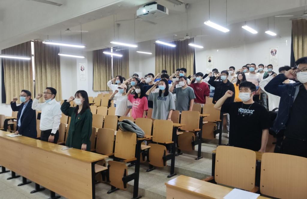 全体参会成员起立奏唱国歌,重温入党誓词