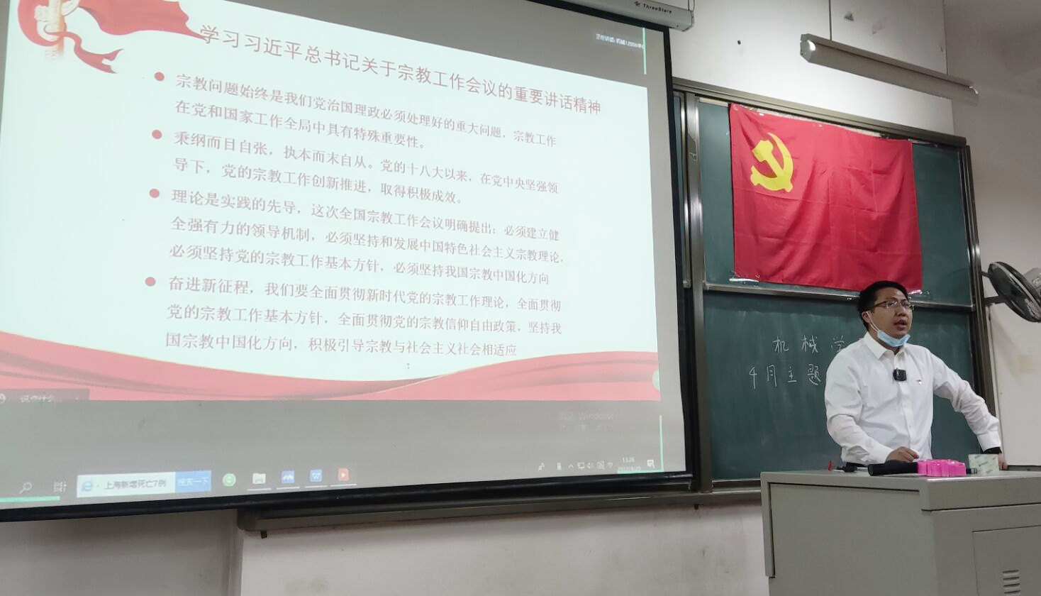 活动最后,刘韦副书记上台作总结发言。他强调了认真、严格履行疫情防控指挥部和社区防控工作的必要性,同时提醒同学们要继续加强政治理论学习,坚持做遵纪守法、有先进思想的优秀大学生。刘书记在讲话中说,作为一名中国共产党员,应当以马列主义、毛泽东思想、邓小平理论、“三个代表”重要思想、科学发展观和习近平新时代中国特色社会主义思想作为自己的行动指南,坚持唯物主义,坚守党员本色,严格要求自我,不惧艰难,在勤俭节约和艰苦奋斗中锤炼党性。