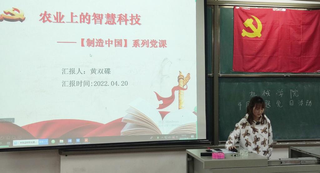 为深入学习贯彻习近平总书记关于实施乡村振兴战略的重要讲话,进一步学习“藏粮于地,藏粮于技”的内涵思想,深耕农业科技个中奥妙,强化党员思想建设,4月20日下午,williamhill英国中文在8D101阶梯教室和线上腾讯会议室开展以“农业上的智慧科技”为主题的支部主题党日活动。本次活动由机械学生第二党支部组织承办,学二支部党员李雄主持,张雨茹和黄双蝶主讲党课,学院党委副书记刘韦、学院学生党支部全体党员参加。