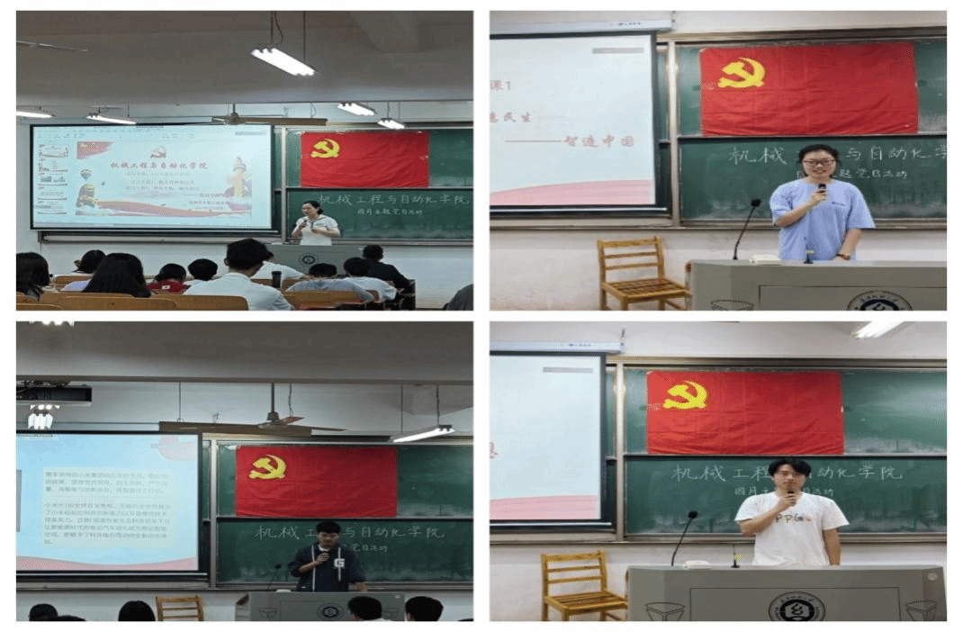 随后,刘金辉同学引领大家深入学习了习近平新时代中国特色社会主义思想,强调了人民至上的理念,并摘编了相关专题内容,同时总结习近平总书记关于推动中部地区崛起的重要讲话精神。张婷婷同学聚焦航天育种,揭示了太空育种的优势和流程,深化了大家对育种核心技术重要性的理解。贾金航同学则以小米汽车为例,讲解了“智造引航,破风而行”的理念,凸显了中国制造业在自主创新和国际竞争力方面的显著成就,充分展现了“自主创新,重点跨越,支撑发展,引领未来”的指导方针在实践中的生动体现。