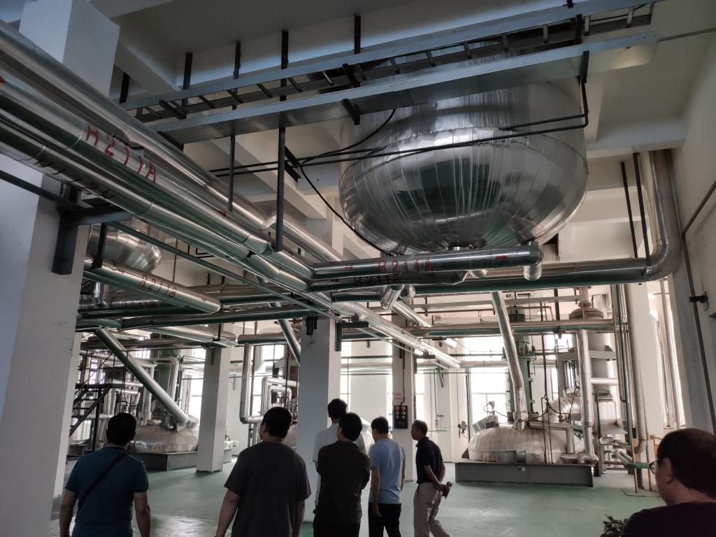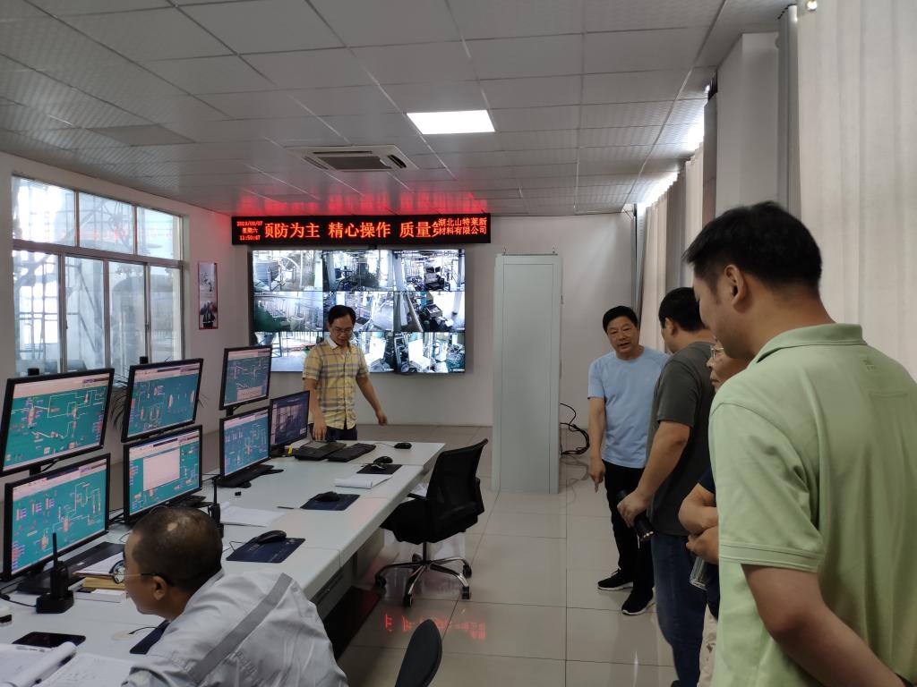 接着,赴湖北山特莱新材料有限公司进行调研与交流,参观了该公司的水溶性环保聚酯浆料生产线以及中央总控室,双方就企业目前需要解决的相关装备技术改造以及生产工艺提升方面进行了详细的交流,并就进一步的合作达成了初步的意向。