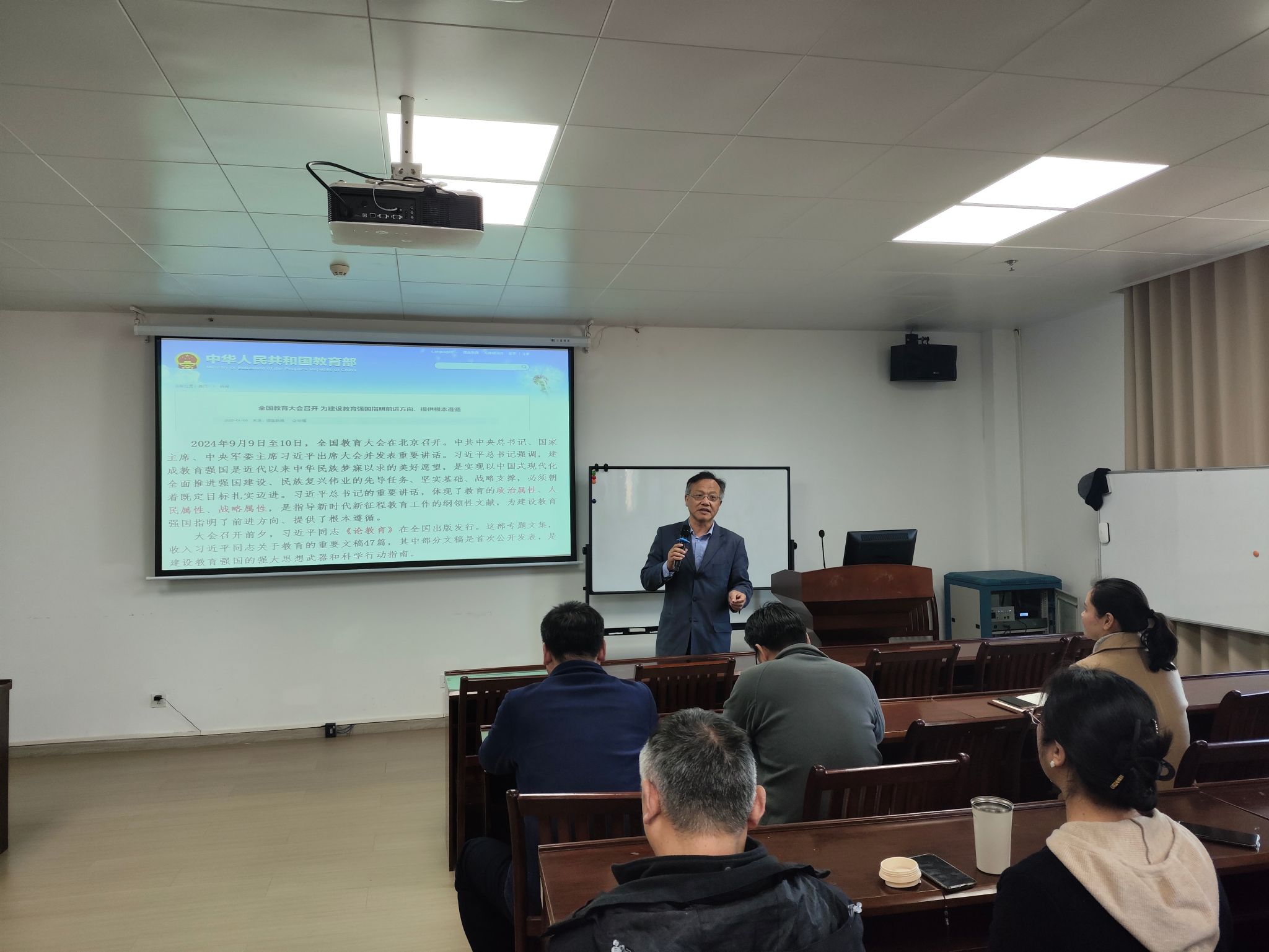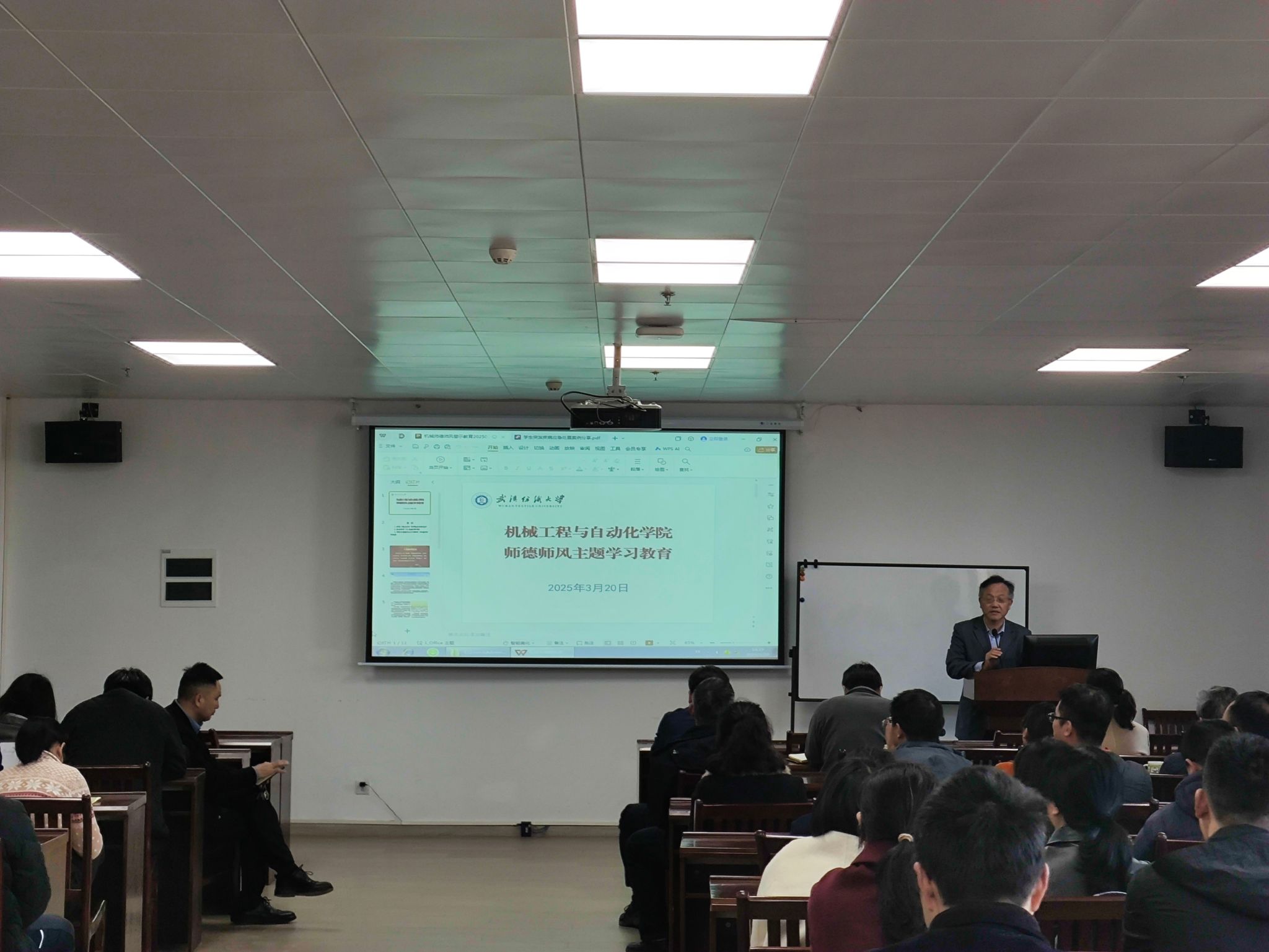 为深入学习贯彻习近平新时代中国特色社会主义思想,持续加强教职工思想政治建设和师德师风建设,近日,机械工程与自动化学院组织开展政治理论学习暨师德师风专题教育活动。学院党委书记干文勋主持学习并作专题宣讲,学院全体教职工参加。