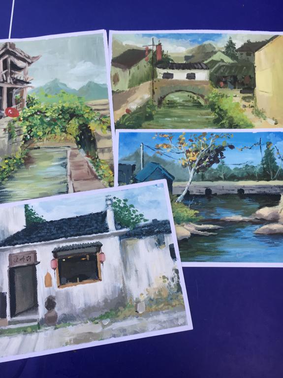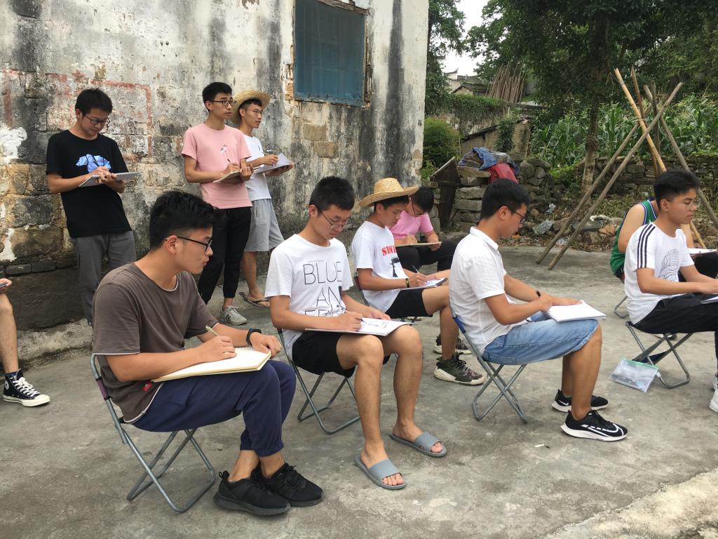 实习过程中,同学们在老师的精心指导下,不管刮风下雨还是烈日当头,都认真地进行速写与色彩写生,克服各种困难,每天按时完成既定学习任务。