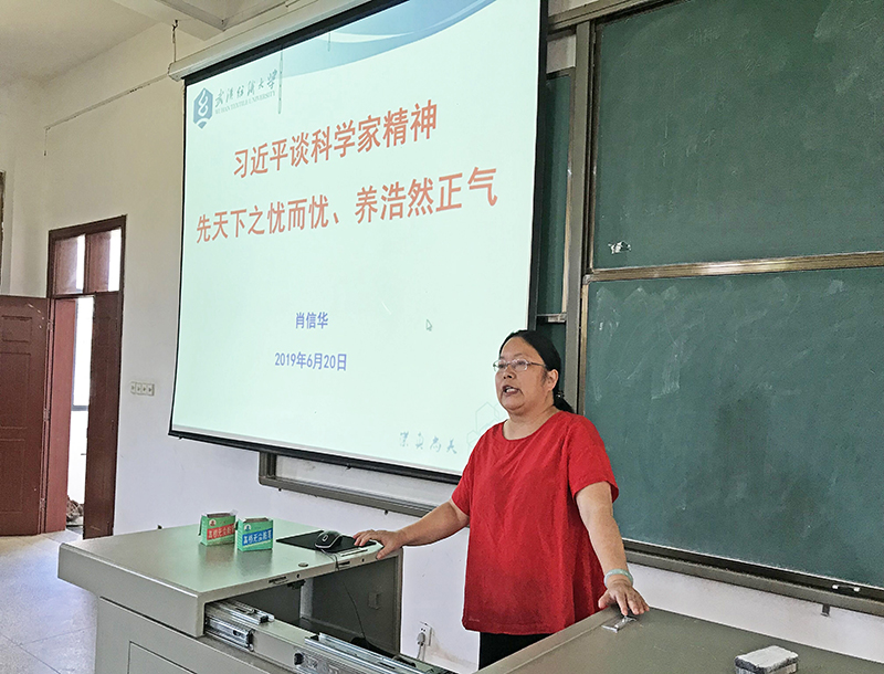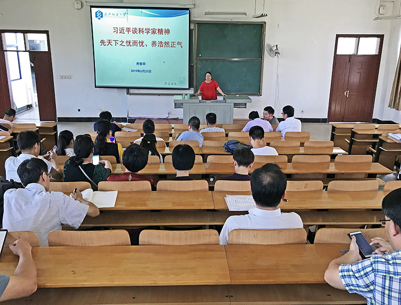 学院党委书记肖信华以《习近平谈科学家精神——先天下之忧而忧、养浩然正气》为题为全体教职工讲党课,带领大家学习了2018年5月28日习近平总书记在中国科学院第十九次院士大会、中国工程院第十四次院士大会上的重要讲话精神。肖书记在党课中指出:各位老师既是科技工作者,又是科技人才的培养者,要贯彻落实习近平总书记重要讲话精神,坚持党对科技事业的领导,坚持走中国特色自主创新道路,全力投身创新实践,勇攀科技发展高峰,切实担负起进军世界科技强国的时代使命。