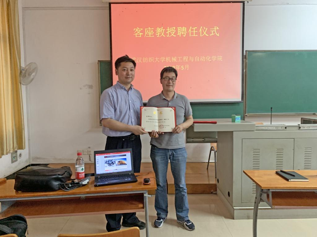 仪式开始,由余院长为大家介绍了聘请的专家——陈伟,他任职东风商用车公司DCPW推进部主任工程师、东风集团IE高级教练。擅长将IE技术落地到生产制造现场QCD,如生产效率提升、工厂物流布局规划、计划协同、供应链协同、产品开发与质量控制、TWI、MTP、DSTR、成本管理等。之后,余院长为陈伟老师颁发聘书。