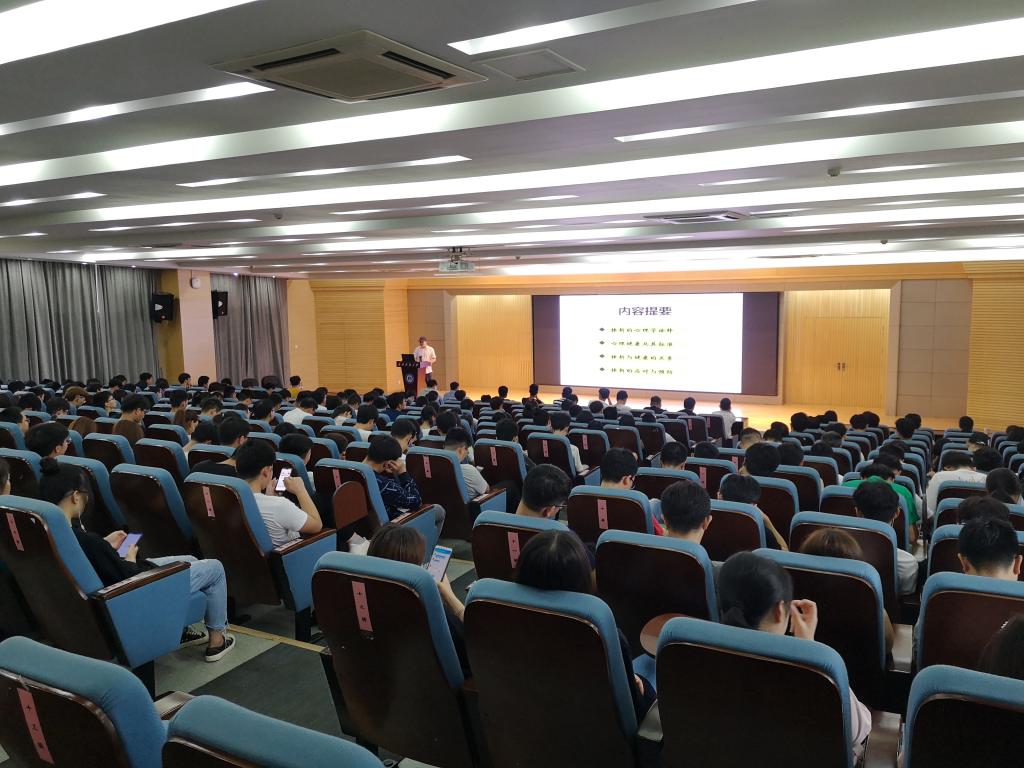 12日下午5:00,由王铭博士主讲的“挫折与心理健康”专题讲座在阳光校区国际学术报告厅举行。williamhill英国中文党委副书记刘韦与学院全体辅导员、2018级全体同学一起聆听了讲座。
