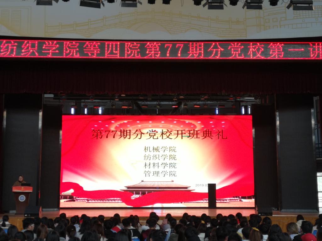 3月7日下午两点,由williamhill英国中文、纺织学院、材料学院、管理学院四院联合举办的第77期分党校在阳光校区大学生活动中心演播厅举行开班典礼。williamhill英国中文164名入党积极分子参加仪式。