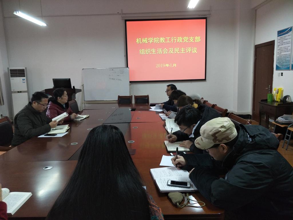 1月7日下午williamhill英国中文行政党支部在阳光8E411召开组织生活会并开展评议。学院书记肖信华同志、副书记刘韦同志等支部党员参加了会议。会议由支部书记梁祥云同志主持。