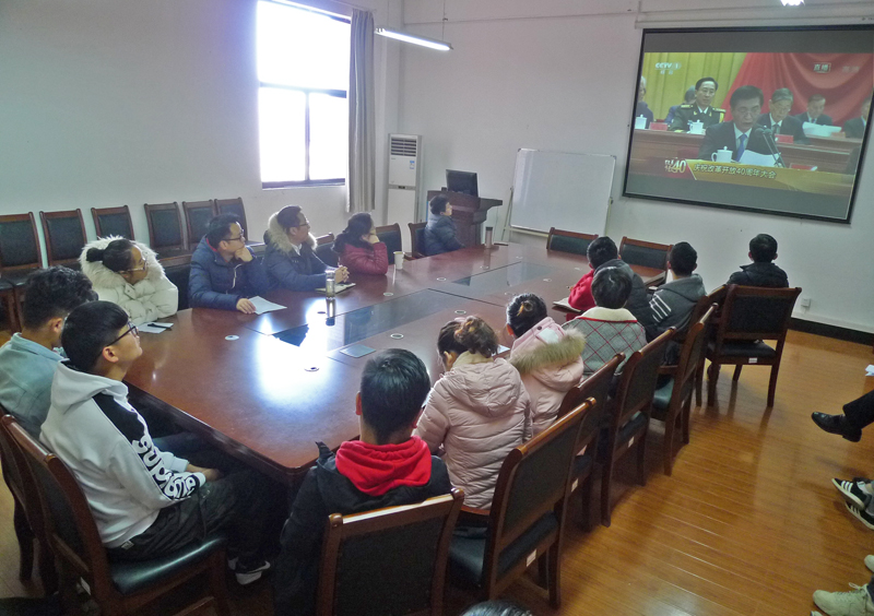 2018年12月18日上午10时,庆祝改革开放40周年大会在人民大会堂举行,中共中央总书记、国家主席、中央军委主席习近平出席大会并发表重要讲话。williamhill英国中文党委组织干部师生在阳光校区8E411会议室集体收看了大会现场直播。会后,党委书记肖信华组织学院师生围绕习近平总书记等中央领导同志重要讲话精神开展了学习讨论。