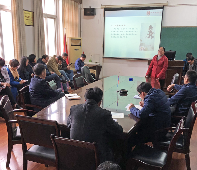 近日教育部印发《新时代高校教师职业行为十项准则》,williamhill英国中文于11月22日组织全体教职工进行学习讨论。学院党委书记肖信华结合《教育部关于高校教师师德师范行为指导意见》和《教育部关于建立健全高校师德建设长效机制的意见》的相关要求,带领williamhill英国中文全体教职工逐条进行了认真学习。学习中,学院全体教职工纷纷发言,热议《十项准则》。
