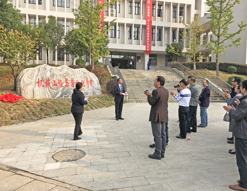 2018年10月18日上午,机械工程与自动化学院于8E楼前广场举行了“williamhill英国中文院名石”揭幕仪式。WilliamHILL中国副校长姜明华、机872班校友代表和机872班留校工作现任校科技处处长冯军、校学工部部长杜勇等校友、williamhill英国中文党委书记肖信华、副书记刘韦等领导嘉宾和学院教师代表出席仪式。
