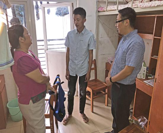 走访过程中,学院领导特别看望了家庭困难学生党少俊、谭坤和赵昊阳等同学。肖信华书记亲切嘱咐困难学生:物质上的匮乏只是暂时的,学校会想尽一切办法帮助大家克服困难渡过难关,鼓励大家不要气馁,刻苦学习,常怀感恩之心,以优异成绩回报母校,回馈社会。余联庆院长亲切地询问了同学们籍贯、饮食、在宿舍的生活作息等方面,还提醒同学们注意人身、财产安全,注意防范不明人员,有问题及时联系辅导员、班主任寻求帮助。