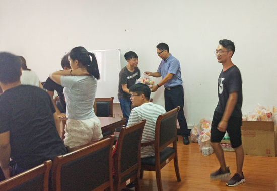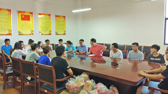 7月27上午,williamhill英国中文院长余联庆、党委副书记刘韦和辅导员梁祥云一行冒着酷暑来到阳光校区看望williamhill英国中文留校考研学生,了解大家的生活和复习进展情况,并重点与经济困难学生进行了座谈。