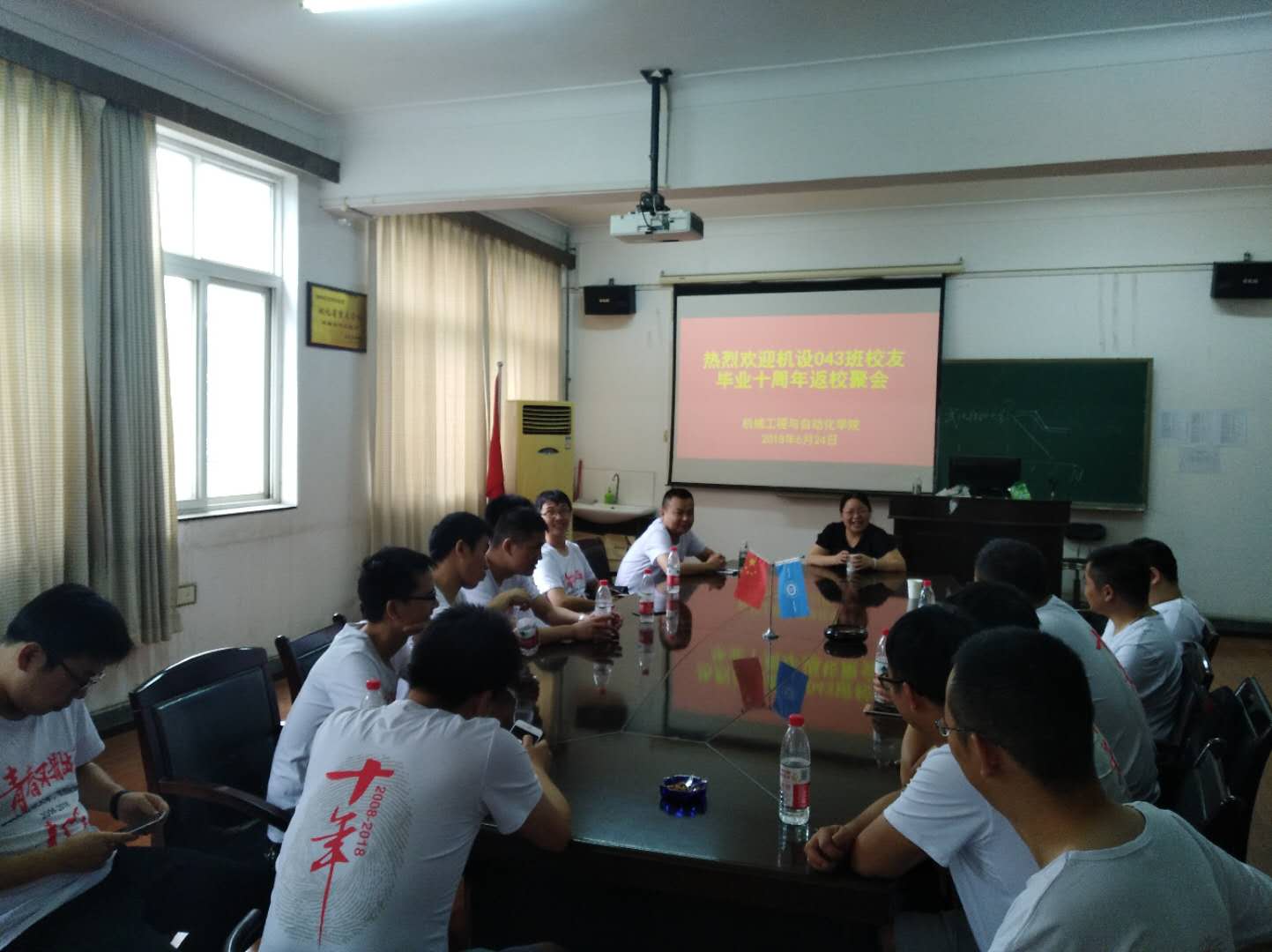 6月24日上午,继测控041班、机设042班以后,williamhill英国中文机设043班校友返校,举行毕业十周年聚会活动,williamhill英国中文党委书记肖信华、辅导员参加了本次活动。