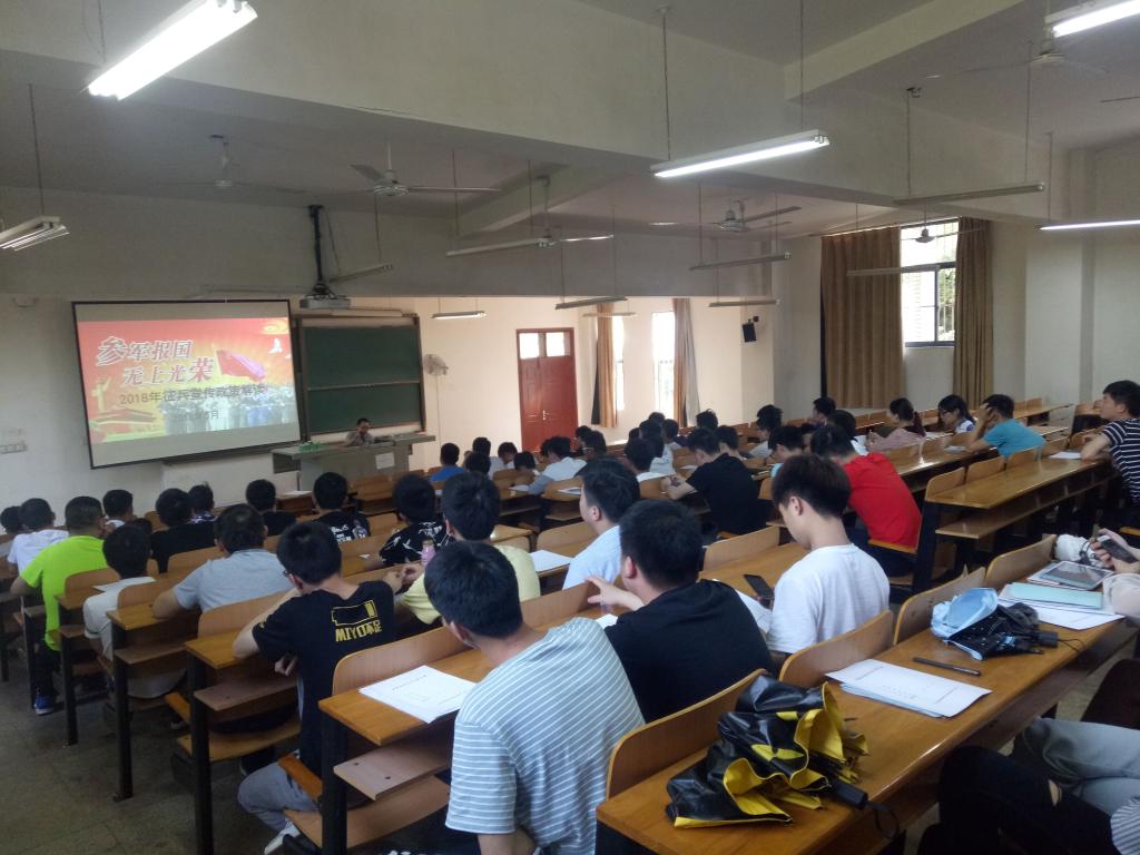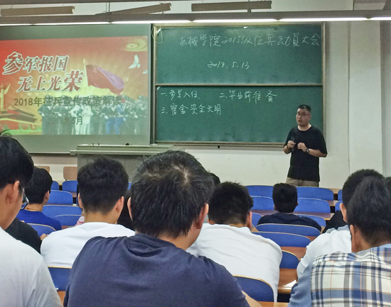 为响应国家大学生征兵工作号召,5月8日至13日,williamhill英国中文遵照校学工部、武装部指示,分年级组织召开以“投身热血军营,书写无悔青春”为主题的大会,全院男生分别参加各自年级大会。