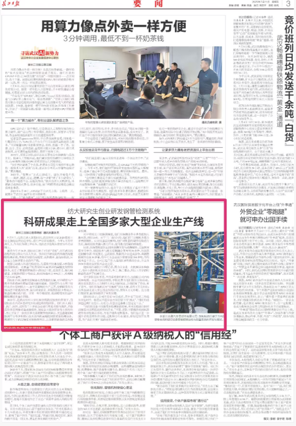 “我们的设备不仅能用来检测钢铁质量,未来还将进行钢材质量实时远程监测系统的开发。”目前,团队主要提供检测机器硬件和智能算法系统,为客户提供定制服务。他们也正进一步提升系统通用性和功能,适配细分行业需求,缩短定制开发周期,为产品打开更广阔的应用市场。
