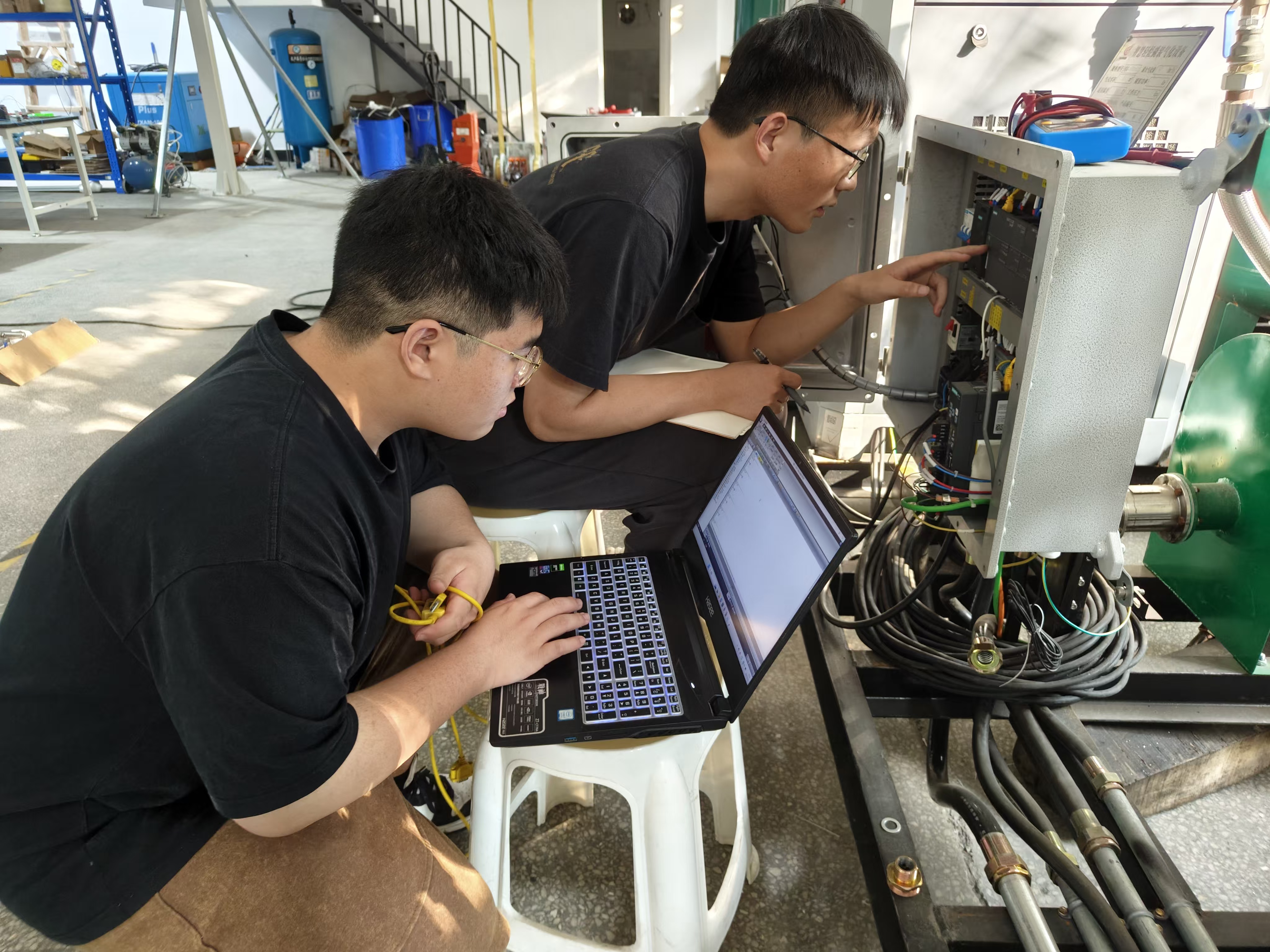 2025年5月,武汉华夏激光科创有限公司,团队嵌入式工程师胡堃、吴政在进行大型可再生燃料循环炉外壳缺陷检测系统的开发与调试。