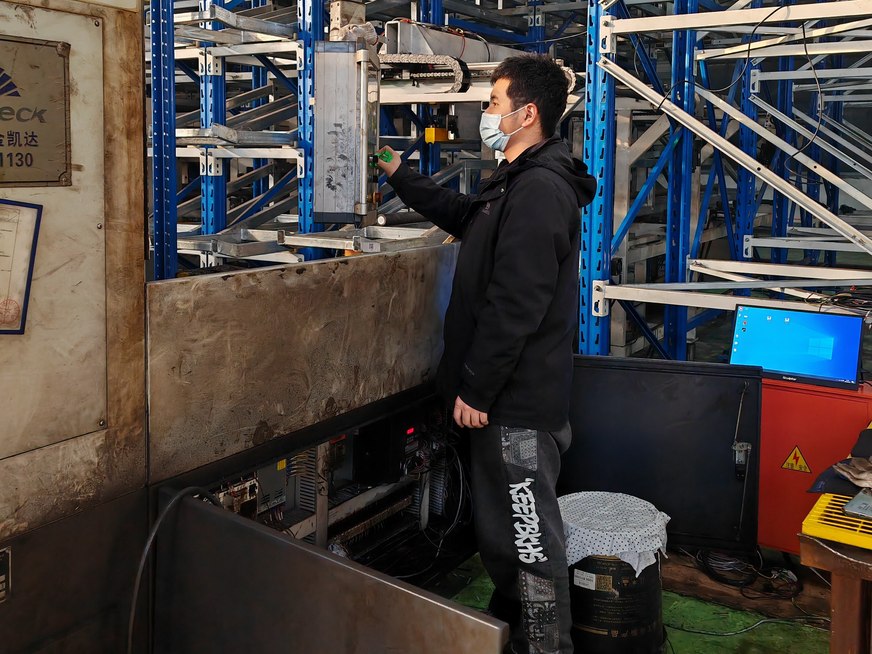 2024年1月,浙江众盈汽车零部件有限公司,饶灿灿在进行基于万吨级钢棒仓库的锯切设备智能视觉定位与测量系统的开发与调试。