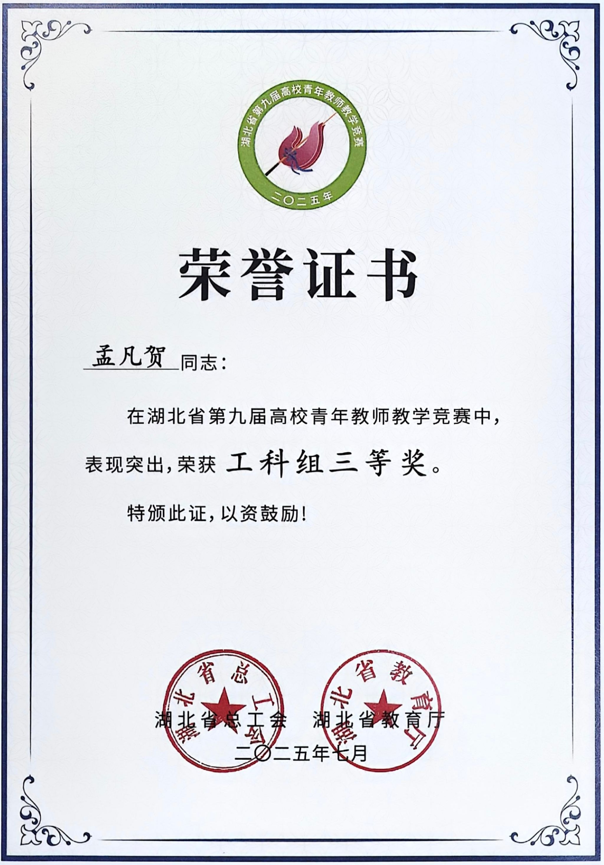 7月12日,由省总工会、教育厅联合主办的湖北省第九届青年教师教学竞赛(简称“青教赛”)决赛圆满落幕。我院青年教师孟凡贺荣获工科组三等奖,实现学院在省青教赛中获奖零的突破。