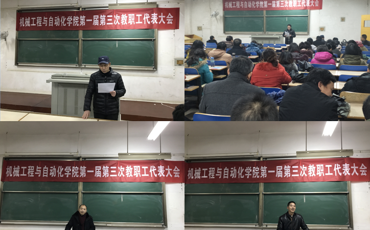 2018年1月4日下午,在嘹亮的国歌声中,机械工程与自动化学院第一届第三次教代会暨工会会员大会在05-111教室隆重举行。本次大会以党的十九大精神为指导,听取并审议学院行政工作报告、工会工作报告、学院公用经费使用情况报告,选举产生新一届学院工会委员。校工会袁卫华副主席、williamhill英国中文全体教职工出席了会议。会议由学院党委书记梅顺齐教授主持。