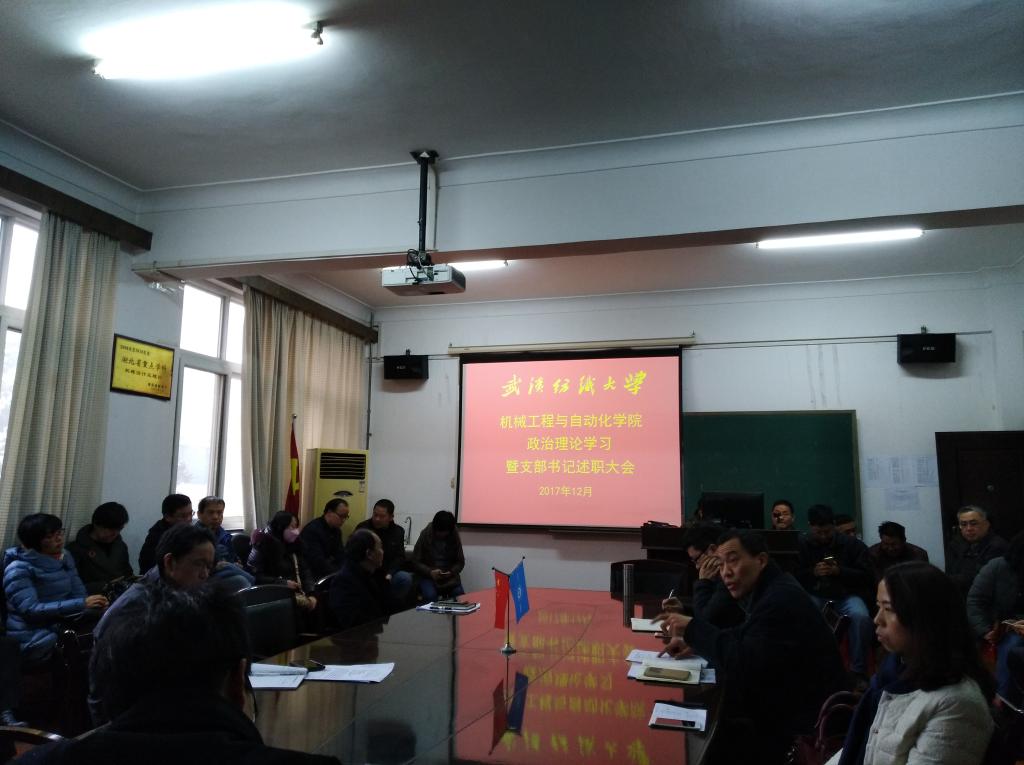 2017年12月18日下午三点,williamhill英国中文党委在全院教工政治理论结束后,在南湖会议室举行了支部书记述职大会以及民主生活会,述职大会由学院党委书记梅顺齐教授主持。