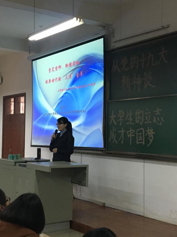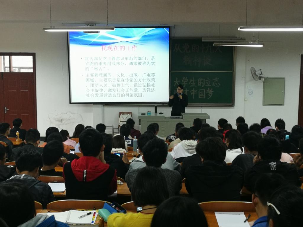 党的十九大胜利闭幕后,williamhill英国中文也组织学生党员开展了各种形式的学习。本次williamhill英国中文邀请的校友刘好,是我校2006年优秀毕业生、学生党支部宣传委员,现为河南省委宣传部党的十九大精神宣讲团负责人之一。讲座内容分三个部分:我的成长经历——从入党追求说起,;我的成长感悟——在信念的指引下;我的成长建议——做新时代的三有青年。刘好用习近平总书记在北师大的演讲为例告诉同学们要端正入党动机,同时要树立崇高的理想信念,作为新时代的大学生,要做到与时代发展同频共振,抓住时代发展的脉搏。同时,结合自己的成长经历和感悟,她鼓励党员骨干在支部建设工作中可以有所为、要有所为,成为党组织坚强有力的一员。最后她结合党的十九大报告中习近平总书记关于青年的论述,勉励同学们:跟着主旋律,相信正能量,坚持理想,不懈努力,成长为有理想、有本领、有担当的青年大学生。