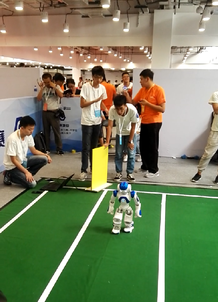 仿人机器人接力赛需要综合运用运动控制、机器视觉以及多机器人无线通信等开发技术,“纺智体”队由测控专业学生组成,他们都参加了工程实训中心举办的“纺智体-机器视觉暑期短训班”,这次比赛是对短训效果的实战检验。