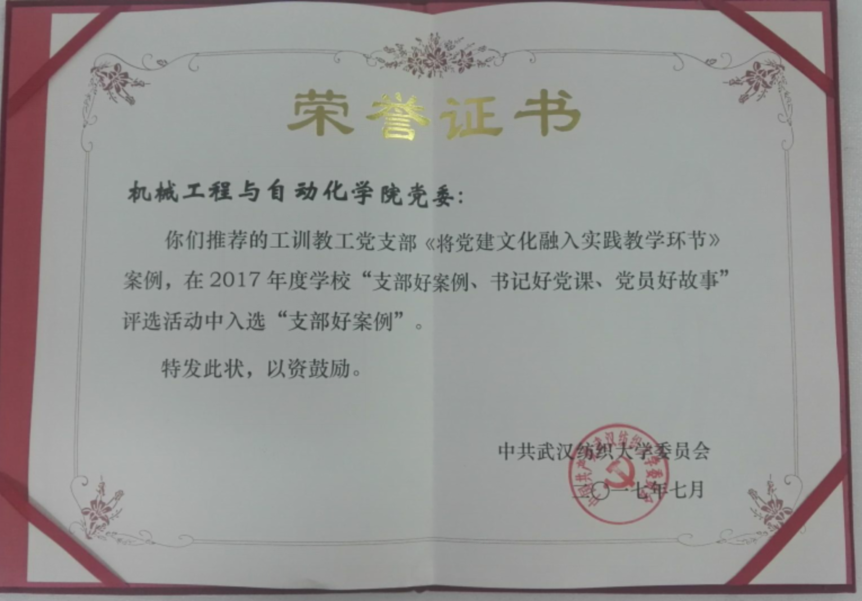 《将党建文化融入实践教学环节》入选学校2017年“支部好案例”