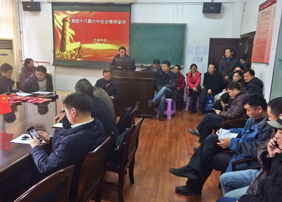 会上,梅书记传达了十八届六中全会精神,领学了《中国共产党第十八届中央委员会第六次全体会议公报》内容,安排部署了十八届六中全会精神的学习贯彻工作。