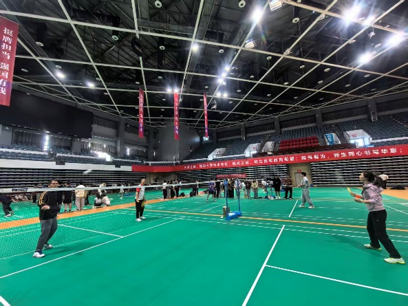 本次比赛采用团体赛制,设有男子双打、女子双打和混合双打等多个项目。赛场上,平日里严谨稳重的教授和学者们纷纷化身为身手矫健的运动员。精彩的高远球、敏捷的网前扑救、默契的轮转配合以及势大力沉的扣杀不断上演,吸引了场边师生的阵阵喝彩。