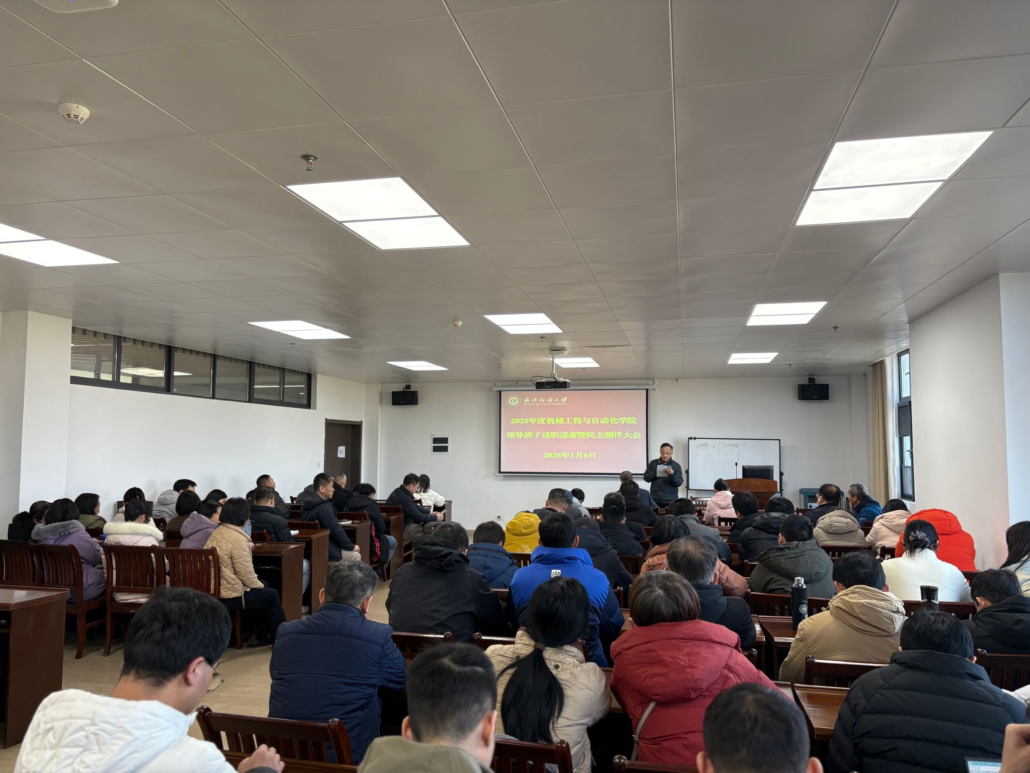 2026年1月6日,机械工程与自动化学院在学院408会议室隆重召开2025年度领导班子述职述廉暨民主测评大会。随后,为了进一步强化校园安全防线,学院同步举办了消防安全知识讲座。校党委组织部委派段溢波书记出席并主持了述职评议环节,学院全体教职工参加了此次会议。
