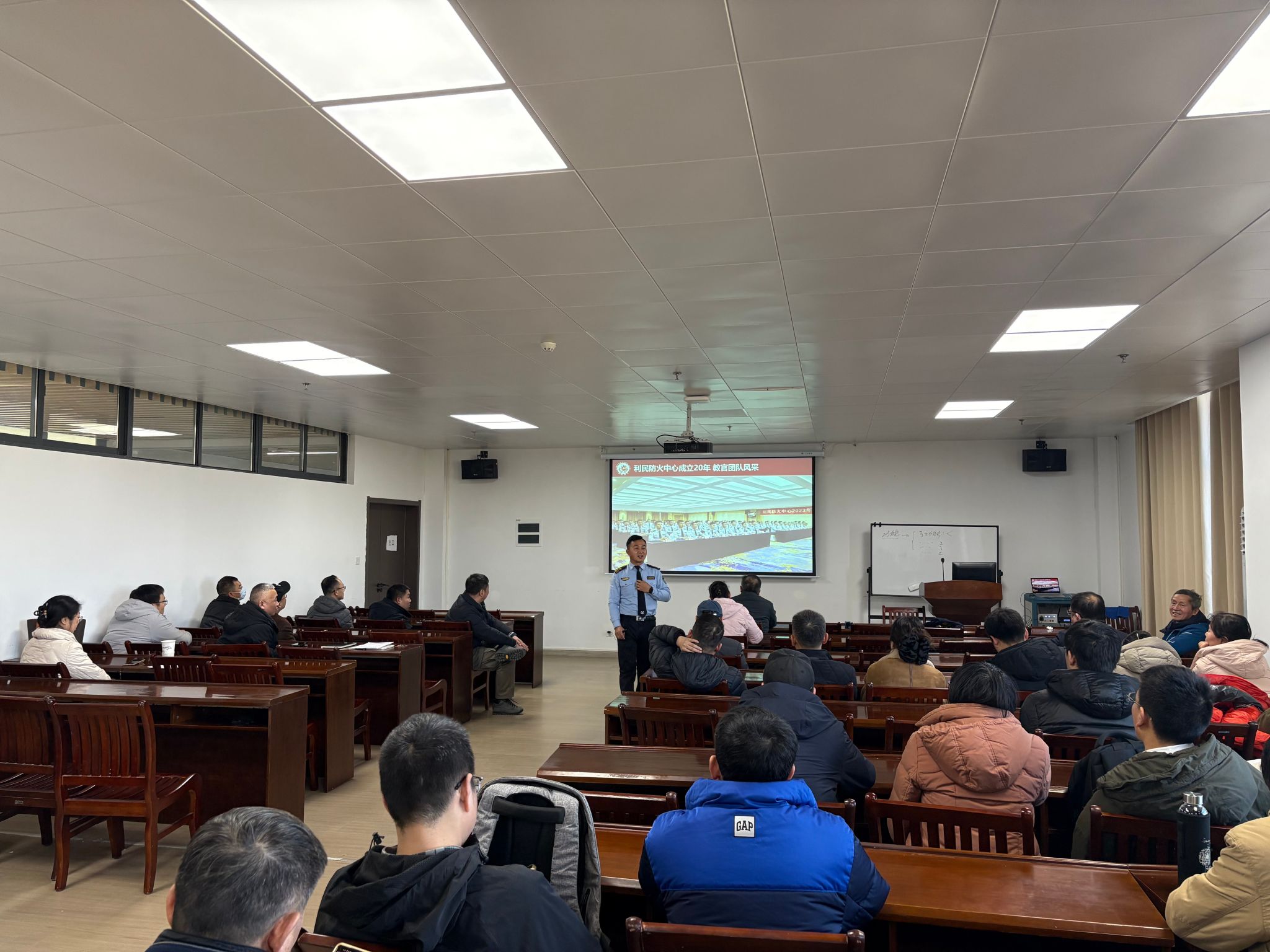 会议第二阶段,学院邀请了武汉市利民消防技术服务中心的易宇峰教官为全体教职工带来了一场生动的消防安全知识讲座。易宇峰教官结合近年来高校及社会面发生的典型火灾案例,通过触目惊心的图片和视频,深入浅出地讲解了火灾发生的常见原因、初期火灾的扑救方法、火场逃生自救技巧以及各类消防器材的正确使用方法。特别是针对实验室、办公室等场所的用电安全,易教官进行了重点提示,提醒大家要时刻紧绷安全之弦,做到“预防为主,防消结合”。