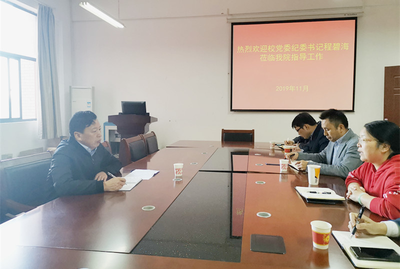 程碧海肯定了学院所取得的成绩,同时也指出了学院存在的不足的地方,给学院提出了五点要求:一是以博士点申报为龙头,加强学科建设。二是以目标为导向,推进学院发展。三是以项目为抓手,促进学院积极参与竞争。四是以改革为动力,加速学院发展。五是以提高服务质量为抓手,加强和改进思想政治工作。