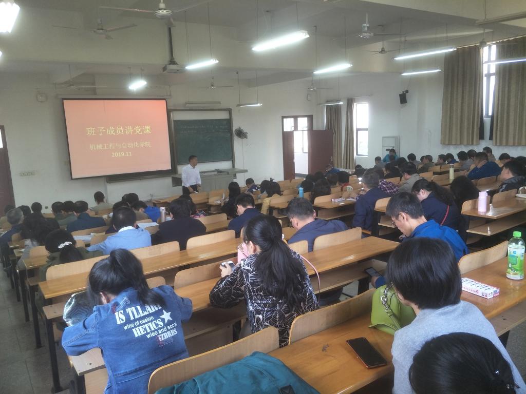 11月7日下午,机械工程与自动化学院院长余联庆同志在8D201讲党课“党员在推动学院发展中如何发挥战斗堡垒作用“。学院全体党员参加了党课学习,院党委书记肖信华同志主持了学习活动。