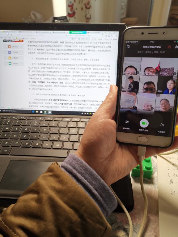 肖书记通报了上午党委会议的主要内容,并当此疫情面前围绕党支部如何发挥的战斗堡垒作用和党员如何发挥先锋模板作用提出了明确的要求。表示我们虽然处于隔离状态,但学校已经开展线上教学等各项工作,我们广大教职工要充分意识到现在我们已经处于上班模式。教师们要积极开展线上教学和论文指导,引导毕业生就业,广大党员更要探索提升网上教学质量,把教学工作作为联系师生、关心师生的载体。谈到科研时表示,要充分利用这段时间做好基金本子和论文的写作,等正式复学时确保我们的各项工作没有发生中断能正常有序推进。强调疫情还没结束目前仍要努力配合住地开展隔离工作,既不能不作为,也不能乱作为,要杜绝致使前期隔离工作前功尽弃的因素发生。要积极关注和调整心态,正确对待疾病和身边可能发生的疫情人员,我们相信一定能战胜疫情。在做好教学科研的同时要引导广大有条件的党员积极下到社区开展防疫抗疫志愿者服务工作。最后要求各支部按照要求召开支部主题党日活动,并把本次会议内容传达好、落实好。