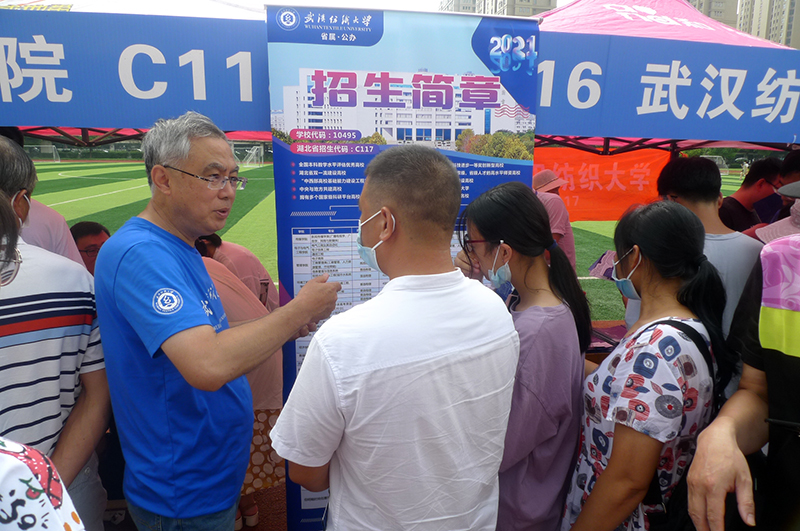 宣传中,团队各成员与考生和家长亲切交流,介绍了纺大校情,让广大考生和家长对于武汉纺大多了一份了解,知道了纺织大学除了纺织以外还有其他许多实力很强的专业。众多考生对纺大表示出浓厚的兴趣,希望前来就读,提出了“填报志愿后能不能被录取”等很多问题,各位领导和老师分别给予了细致的讲解,最大程度的消除了同学们的疑惑。
