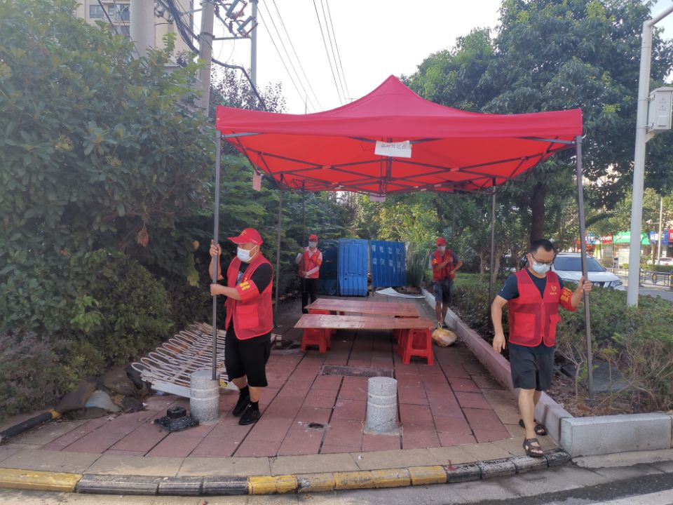 与临时志愿者不同,长期志愿者们在防控严峻时期要每天与社区人员一同工作,受社区网格员指派,承担大量内外勤工作。从9日下午开始,梁祥云同志从门岗维持秩序,到协助核酸检测,再到各类生活物资领取派送;从秩序劝导,到政策宣讲,再到居民信息录入;从物资搬运,到紧急外出证明传递,再到解答咨询和信息广播;同时还要承担长期志愿服务队的组织领导,协调志长期愿者们疫情期间在五月花小区1期和2期所有任务与人员安排,及时完成社区安排的各项任务……三伏天里,梁老师顶着烈日高温,冒着突降暴雨,以并不高大强壮的身躯,克服身体极限承担了巨量且琐碎的工作。