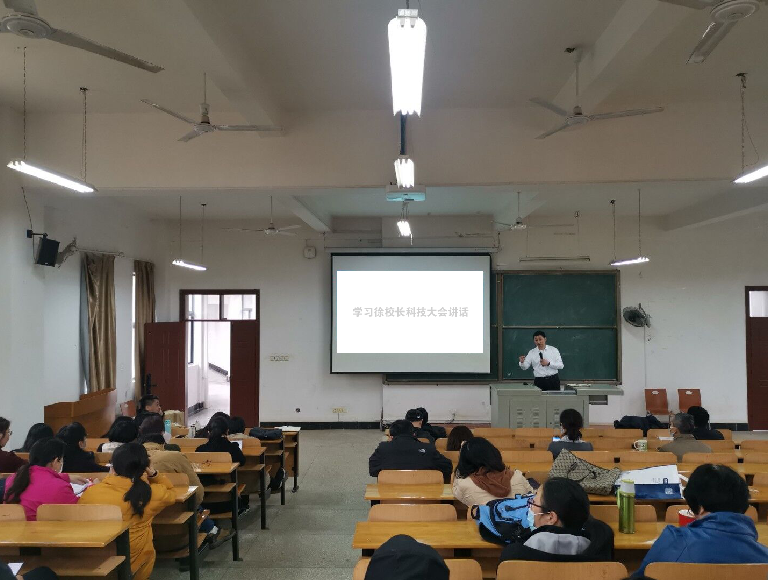 6月9日,williamhill英国中文召开全体教职工大会,院长余联庆传达了学校2022年科技创新大会精神,并带领教职工学习了徐卫林院士在科技创新大会上做的题为《发扬创新精神 激发科研活力》的讲话。