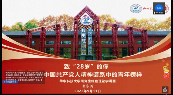 受学院2022级新生辅导员李宏运的邀请,华中科技大学博士工作委员会主席陈奕博学长和华中科技大学红色宣讲团主席团成员张东琪学长在线上为萌新们讲授了一堂精彩而深刻的开学第一课和党史教育第一课。