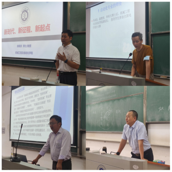 随后,胡峰老师、张弛老师、薛勇老师分别对机械类和自动化类专业的师资力量和办学历史进行了详细的介绍,并对本专业是什么、学什么、有何用进行了详细的解答,让2022级新生对所学专业有了更深入的了解。接着,三位老师强调了本专业的毕业要求,对于如何学好专业知识和如何学以致用提供了自己的建议。