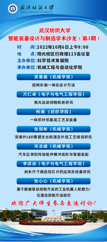 为了在全校范围内形成人人做科研,做真科研,真做科研的良好学术氛围。经过科发院的精心组织,沟通相关院部,由机械工程与自动化学院承办的2022年系列学术沙龙活动第三期智能装备设计与制造方向专题学术研讨于10月6日上午9:00如期举行。学院书记干文勋、院长余联庆参加了会议。