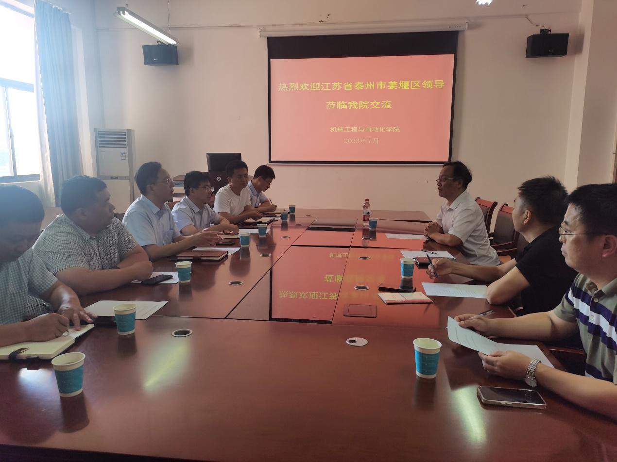干文勋书记代表学院对江苏省泰州市姜堰区一行表示欢迎,介绍了我校的办学历史、学校“双一流”建设、人才建设、以及目前williamhill英国中文的教学科研现状。干书记指出,学校需加强与地方政府和企业对接,学校在科技、人才和成果转化各方面都具有优秀的成果,希望能通过此次的交流,搭建与地方政府和企业的合作平台,促进双方事业的高质量发展。