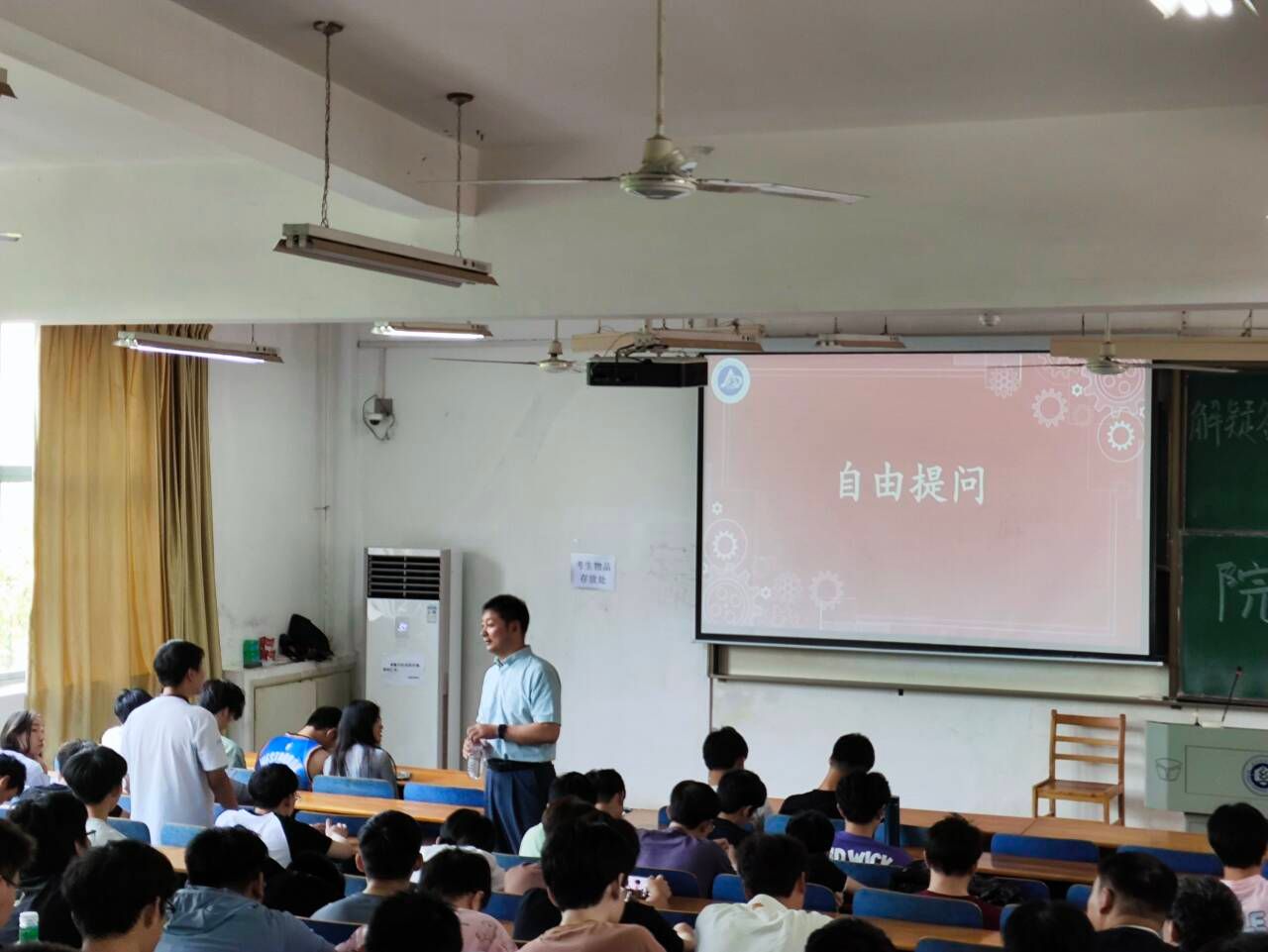 2021级本科生正处在大学生涯的关键时期,为解答同学们的疑惑,明确未来规划,切实助力学生成长。5月15日下午,机械工程与自动化学院于崇志楼116顺利开展“答疑释惑、科学规划、助力成长”院长答疑课。此次答疑课为机械专业专场,院长余联庆、学院副书记周玉艳出席了本次答疑课,全体同学参加活动。答疑课由21级辅导员方林主持。