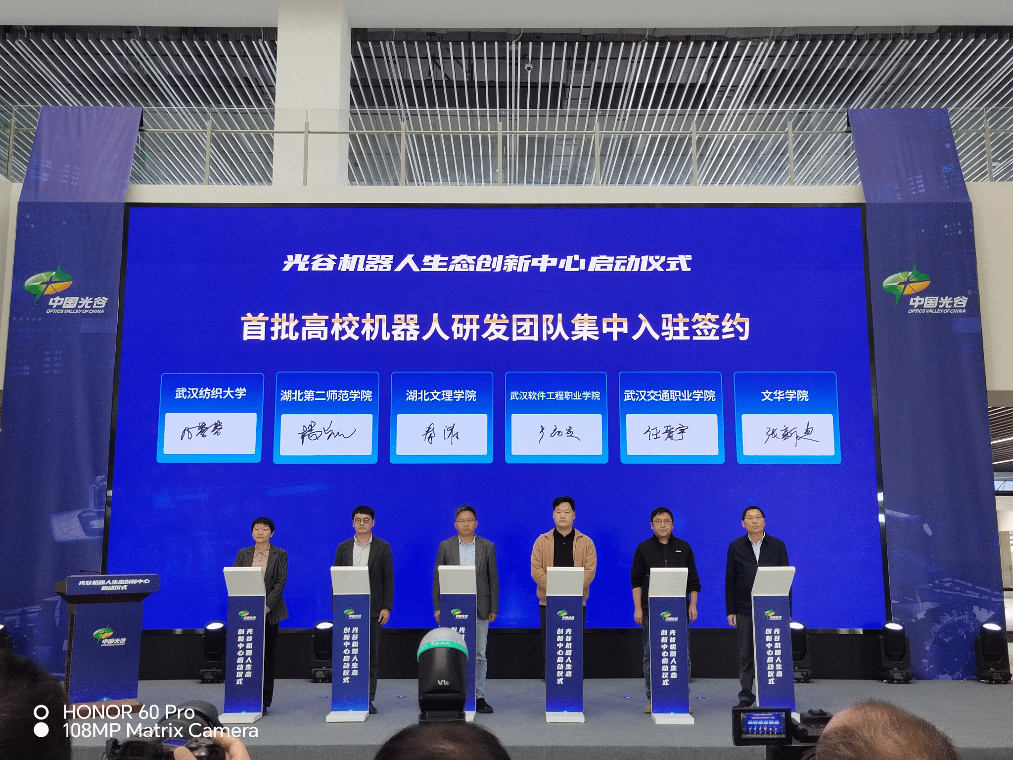 10月28日下午,创新创业学院副院长凡蓉蓉、williamhill英国中文教授张弛两位老师带领学生参加武汉光谷机器人生态创新中心启动仪式,我校作为首批高校机器人研发团队入驻,凡蓉蓉副院长代表我校机器人研发团队参加签约仪式。