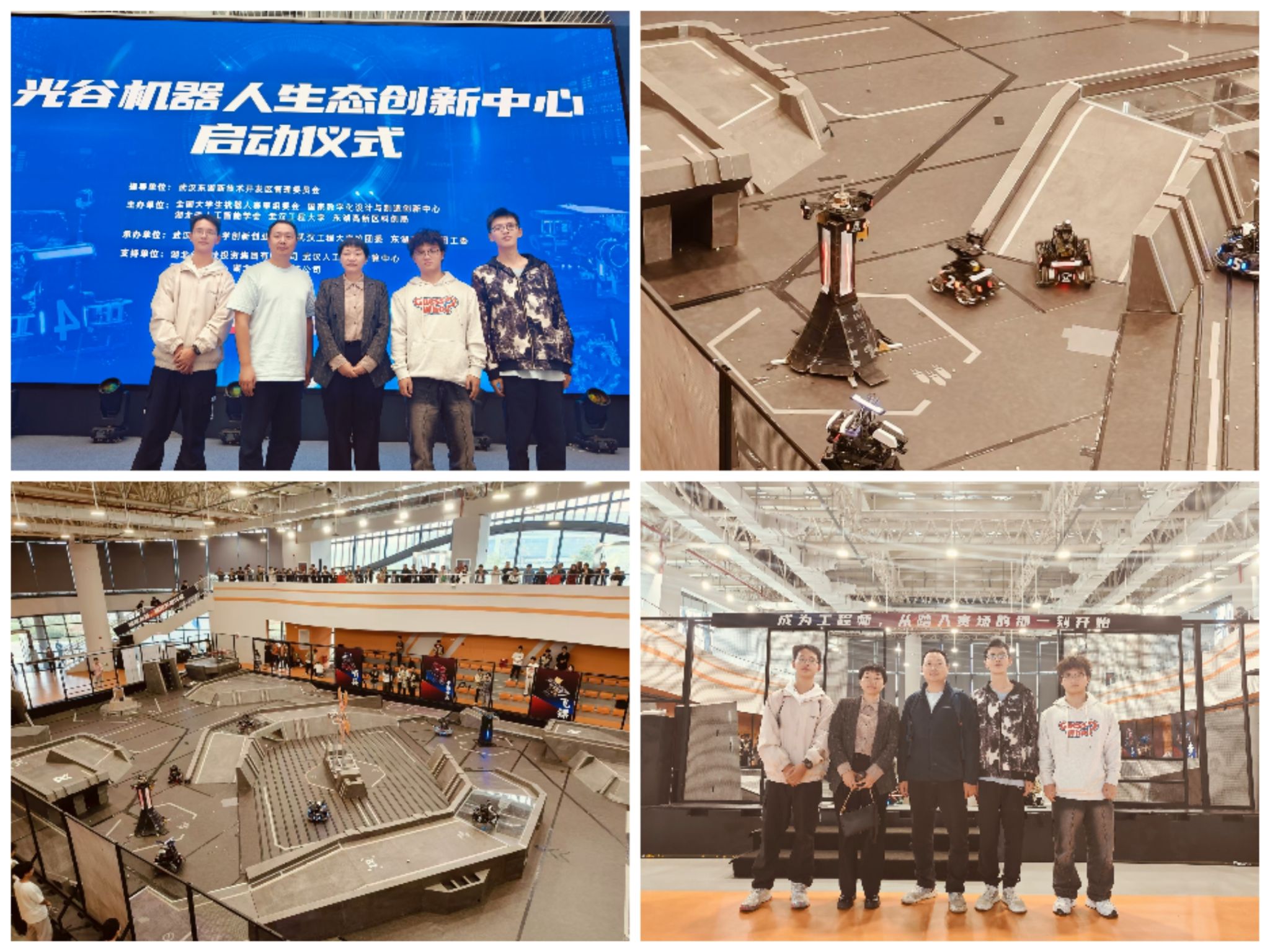 随后大家参观了创新中心的场地和设备,观看了由武汉工程大学和华中科技大学带来的机甲大师高校联盟赛的精彩表演,比赛的精彩解说以及战队选手们通过精准的操作让机器人在赛场上展现出了惊人的表现,给老师和学生们留下了深刻的印象。