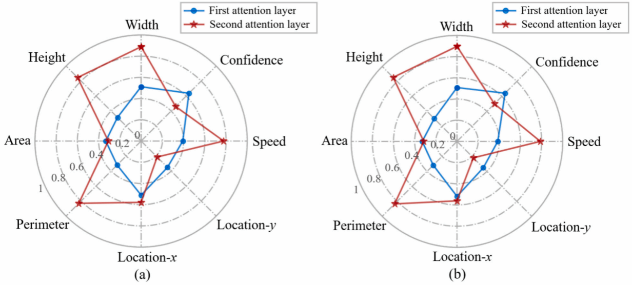 图2 双层注意力线性层在 (a) 训练集和 (b) 测试集上的权重可视化